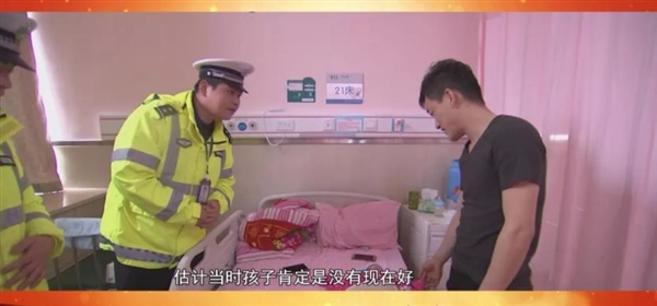 当时产妇羊水已破,即将临盆。在征得同意后,民警将产妇转移至对向警车上,送往医院。